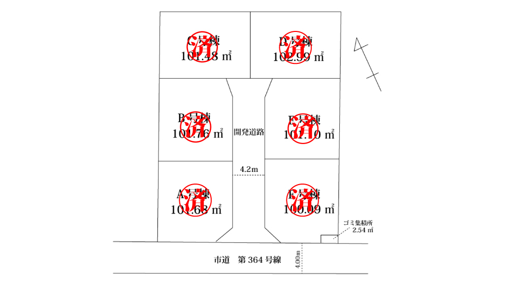 | 価格 | A号棟 成約済 B号棟 成約済 C号棟 成約済 D号棟 成約済 E号棟 成約済 F号棟 成約済 |
