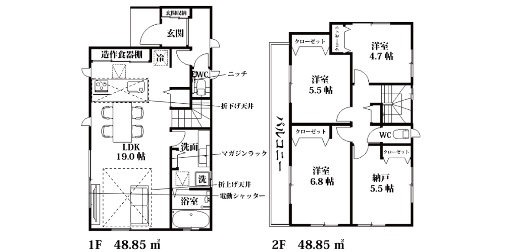 | 間取詳細 | LDK19.0帖・洋6.8帖・洋5.5帖・洋5.5帖・洋4.7帖 |