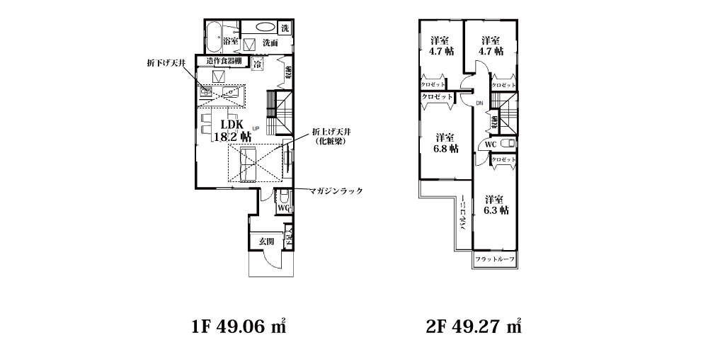 | 間取詳細 | LDK18.2帖・洋4.7帖・洋6.8帖・洋4.7帖・6.3帖 |