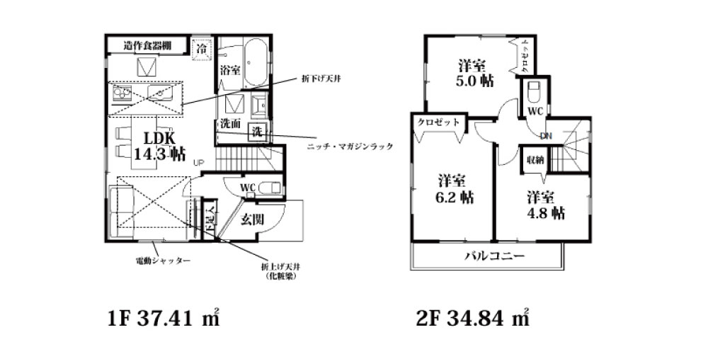 | 間取詳細 | LDK14.3帖・洋6.2帖・洋5.0帖・4.8帖 |