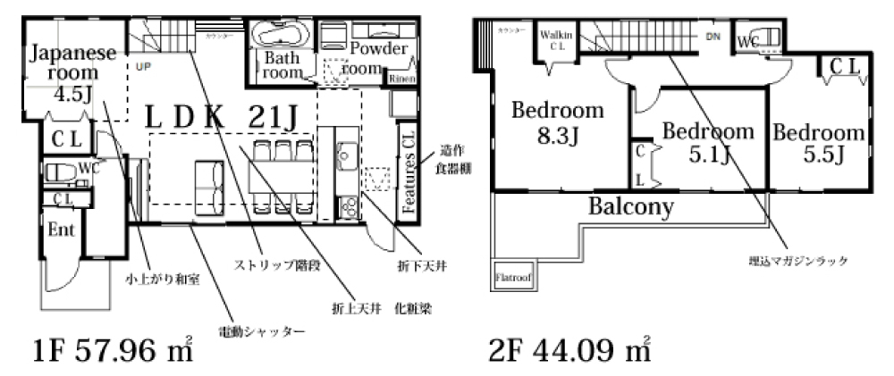 | 間取詳細 | LDK21帖・和4.5・洋8.3帖・洋5.1帖・洋5.5帖 |