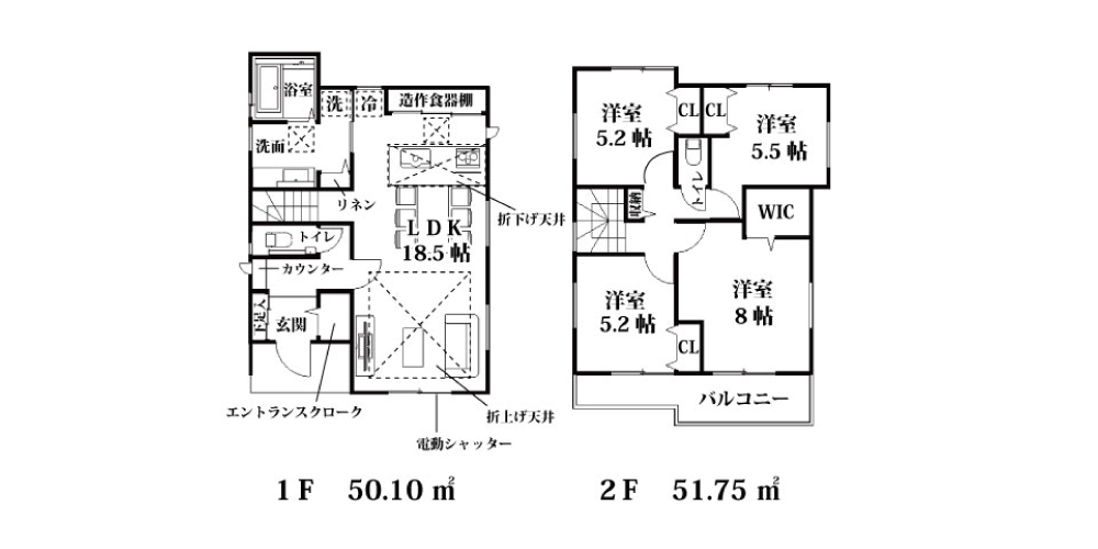| 間取詳細 | LDK18.5帖・洋5.2帖・洋5.5帖・洋5.2帖・洋8.0帖 |