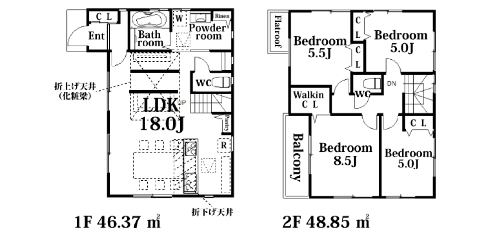 | 間取詳細 | LDK18帖・洋5帖・洋5.5帖・洋5帖・洋8.5帖 |