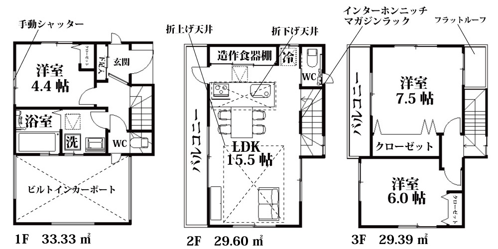 | 間取詳細 | LDK15.5帖・洋4.4帖・洋6.0帖・洋7.5帖 |