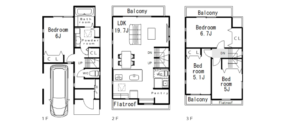 | 間取詳細 | LDK19.7帖・洋6帖・洋6.7帖・洋5.1帖・洋5帖 |