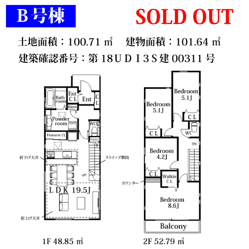 | 建物面積 | 100.88u〜109.84u |
