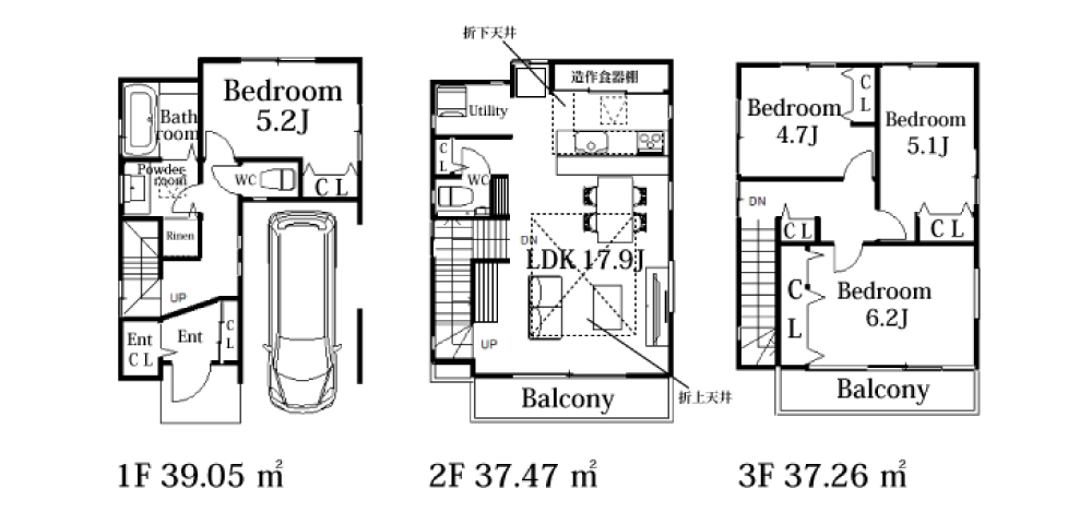 | 間取詳細 | LDK17.9帖・洋5.2帖・洋4.7帖・洋5.1帖・洋6.2帖 |