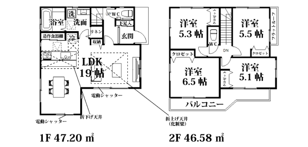 | 間取詳細 | LDK19帖・洋5.5帖・洋5.5帖・洋6.5帖・洋5.1帖 |