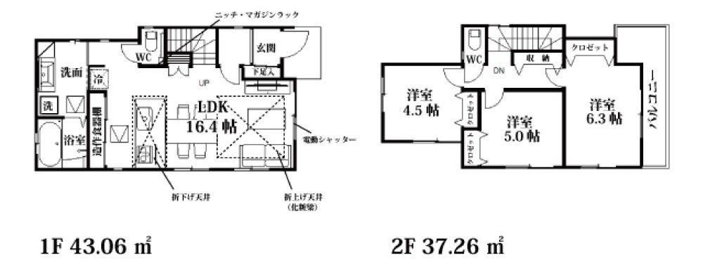 | 間取詳細 | LDK16.4帖・洋5.0帖・洋6.3帖・洋4.5帖 |