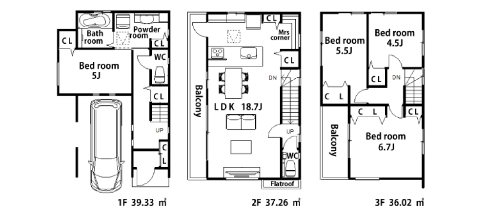 | 間取詳細 | LDK18.7帖・洋5帖・洋5.5帖・洋4.5帖・洋6.7帖 |