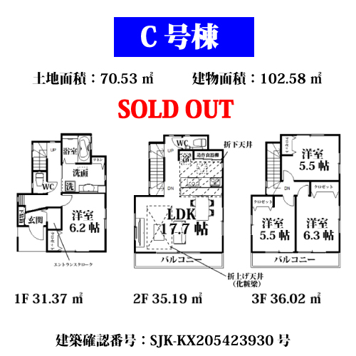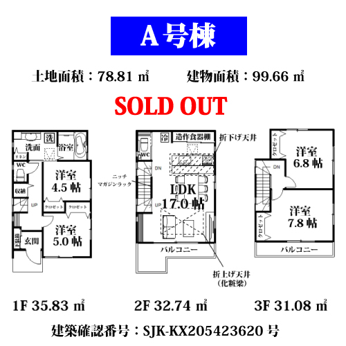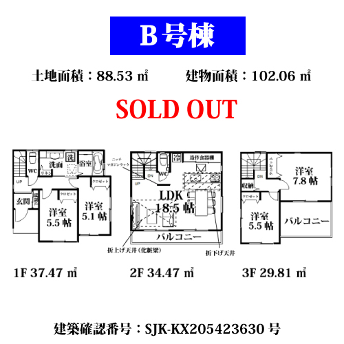 | 敷地面積 | A号棟:78.81u B号棟:88.53u C号棟:70.53u D号棟:77.53u E号棟:68.62u |