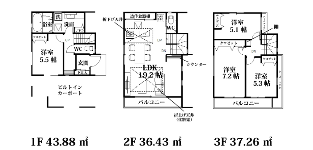 | 間取詳細 | LDK19.2帖・洋室5.5帖・洋5.1帖・洋7.2帖・洋5.3帖 |