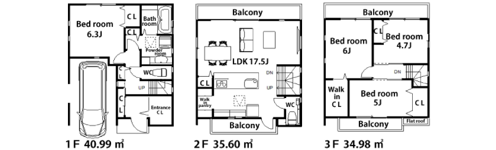 | 間取詳細 | LDK17.5帖・洋6.3帖・洋5帖・洋6帖・洋4.7帖 |