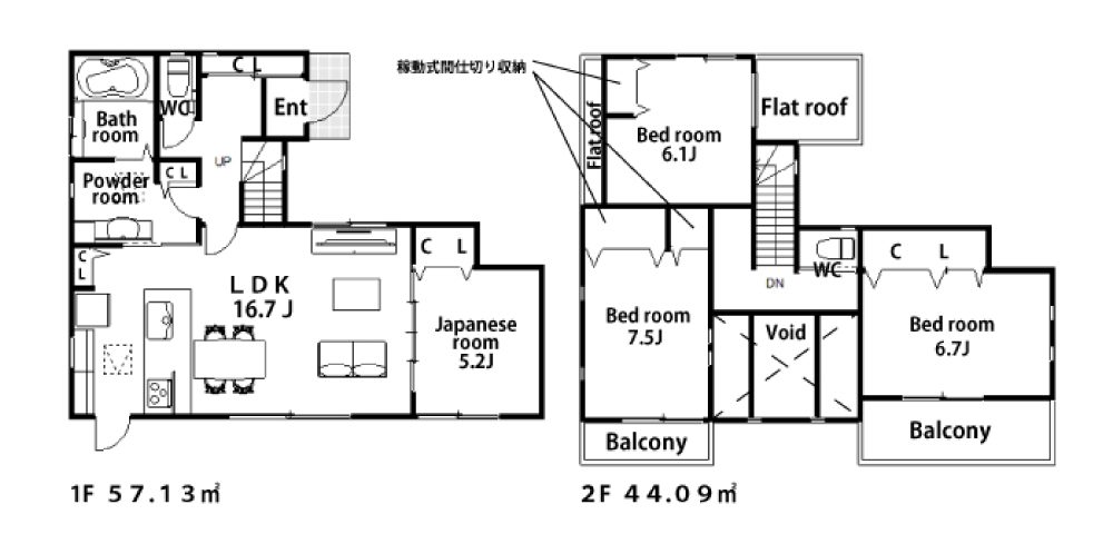 | 間取詳細 | LDK16.7帖・和5.2帖・洋5.2帖・洋6.7帖・洋7.5帖 |