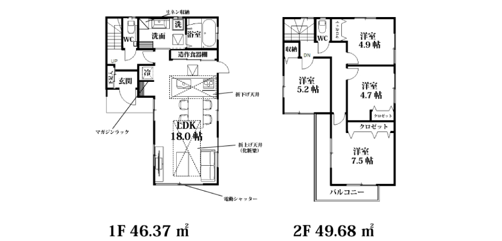 | 間取詳細 | LDK18帖・洋4.9帖・洋5.2帖・洋4.7帖・洋7.5 |