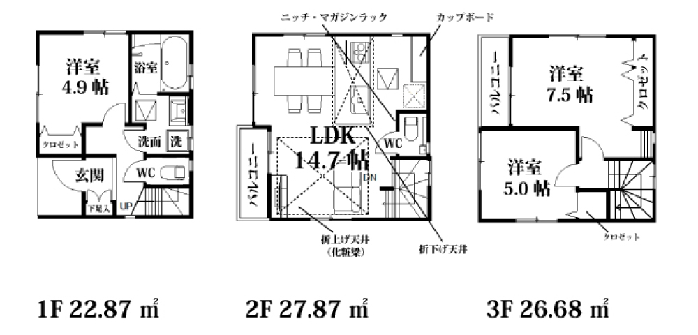 | 間取詳細 | LDK14.7帖・洋4.9帖・洋5.0帖・洋7.5帖 |