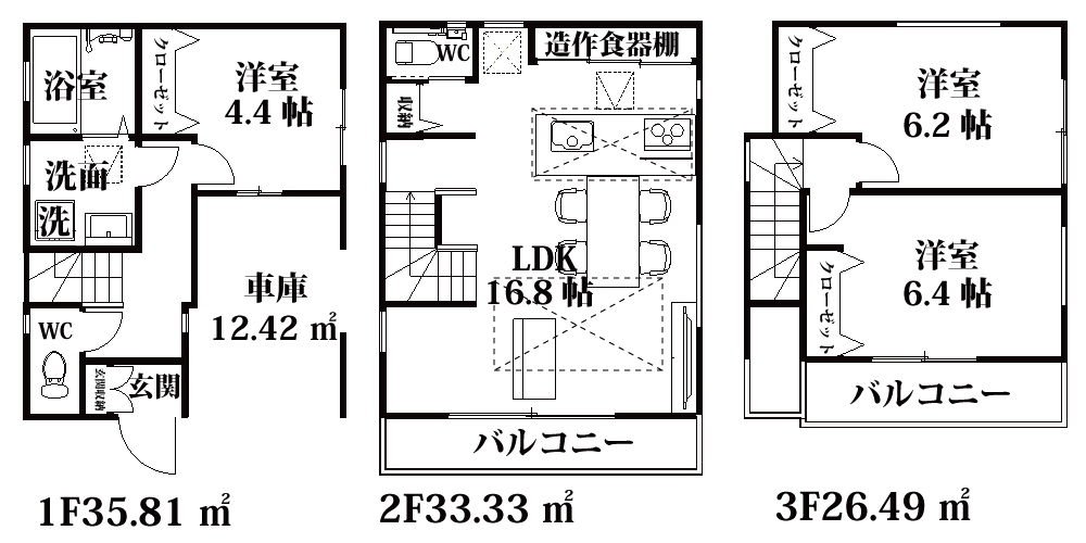 | 間取詳細 | LDK16.8帖・洋4.4帖・洋6.2帖・洋6.4帖 |