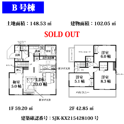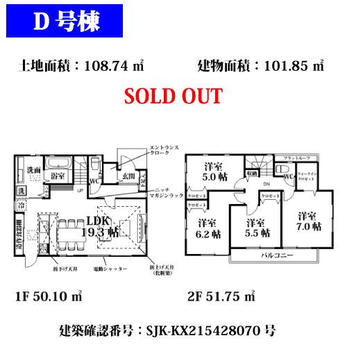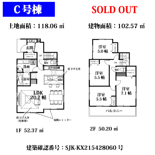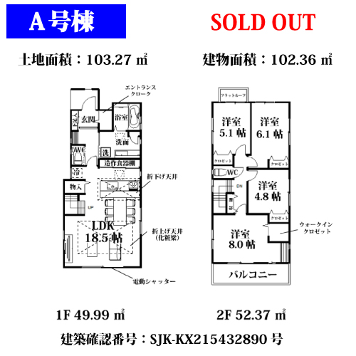 | 建物面積 | A号棟 102.37u B号棟 102.05u C号棟 102.57u D号棟 101.85u E号棟 102.26 F号棟 102.26u G号棟 101.02u |