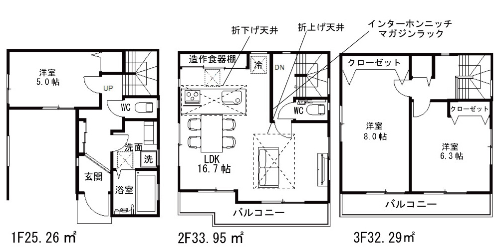 | 間取詳細 | LDK16.7帖・洋5.0帖・洋8.0帖・洋6.3帖 |