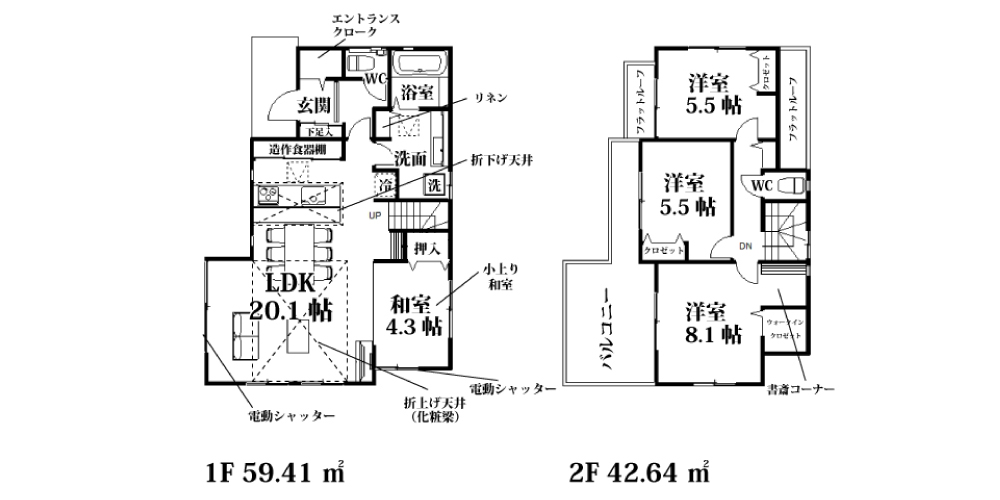 | 間取詳細 | LDK20.1帖・和4.3帖・洋5.5帖・洋5.5帖・洋8.1帖 |