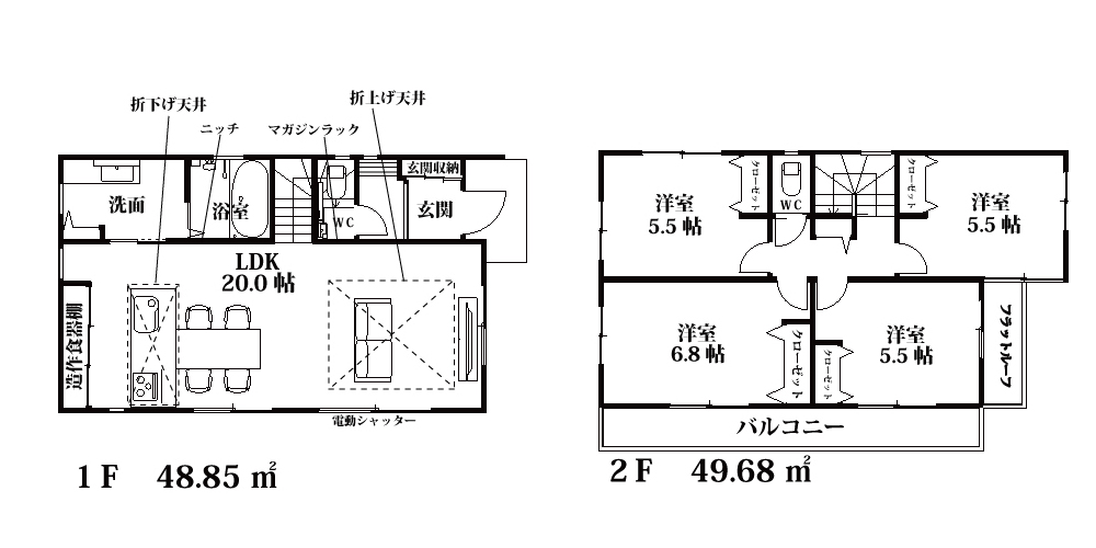 | 間取詳細 | LDK20.0帖・洋6.8帖・洋5.5帖・洋5.5帖・5.5帖 |