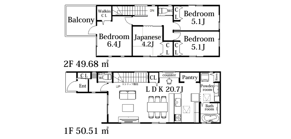 | 間取詳細 | LDK20.7帖・和4.2帖・洋5.1帖・洋5.1帖・洋6.4帖 |