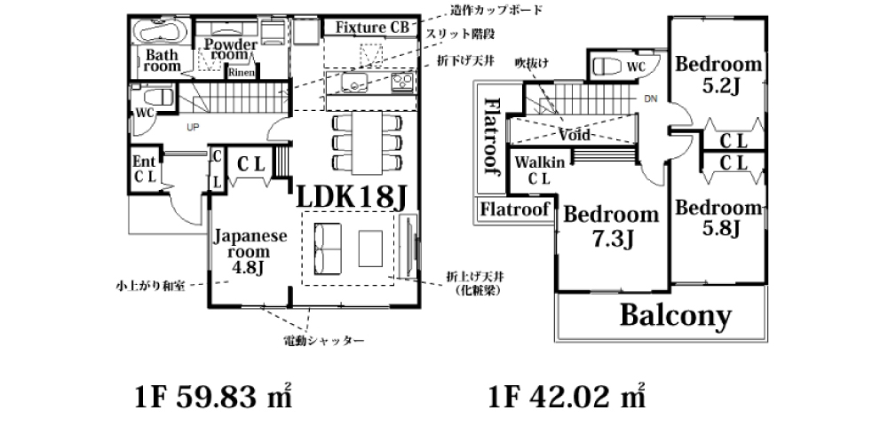 | 間取詳細 | LDK18帖・和4.8帖・洋5.2帖・洋5.8帖・洋7.3帖 |