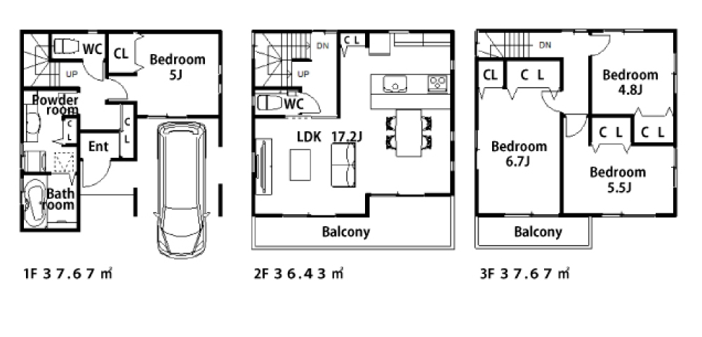 | 間取詳細 | LDK17.2帖・洋5帖・洋6.7帖・洋5.5帖・洋4.8帖 |