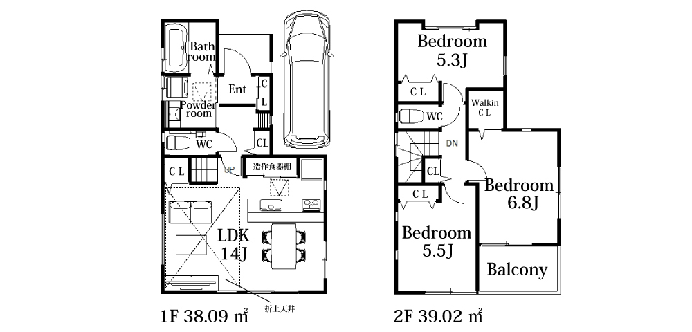 | 間取詳細 | LDK14帖・洋5.3帖・洋5.5帖・洋6.8帖 |