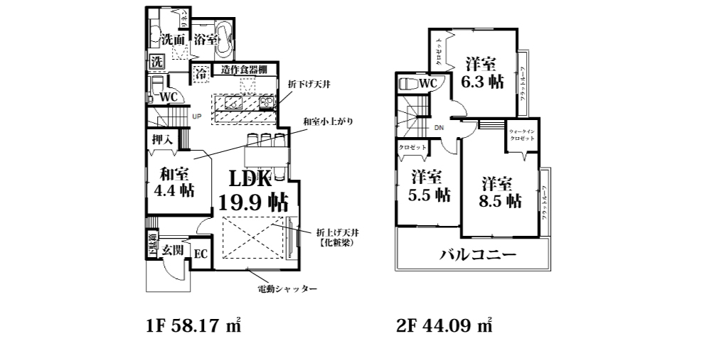| 間取詳細 | LDK19.9帖・和4.4帖・洋5.5帖・洋6.3帖・洋8.5帖 |
