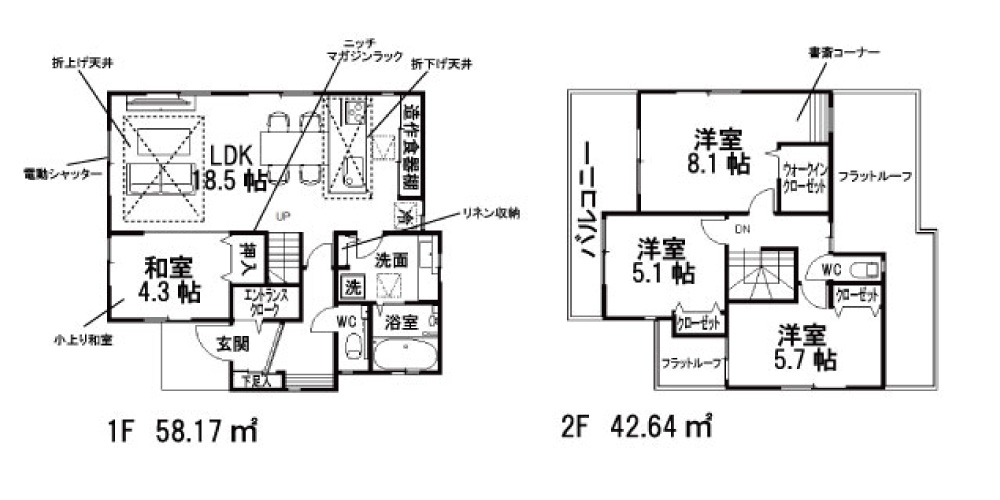 | 間取詳細 | LDK18.5帖・洋8.1帖・洋5.7帖・5.1帖・和4.3 |
