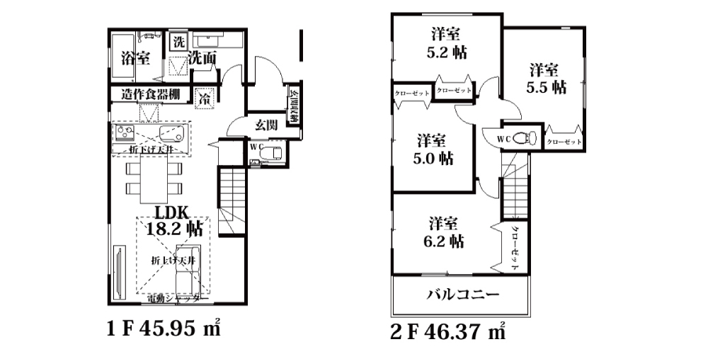 | 間取詳細 | LDK18.2帖・洋6.2帖・洋5.0帖・洋5.1帖・洋5.1帖 |