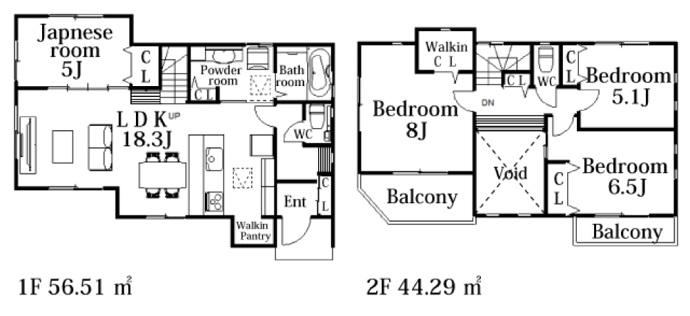 | 間取詳細 | LDK18.3帖・和5帖・洋8帖・洋5.1帖・洋6.5帖 |