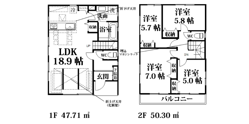 | 間取詳細 | LDK18.9帖・洋5.7帖・洋5.8帖・洋5.0帖・洋7.0帖 |