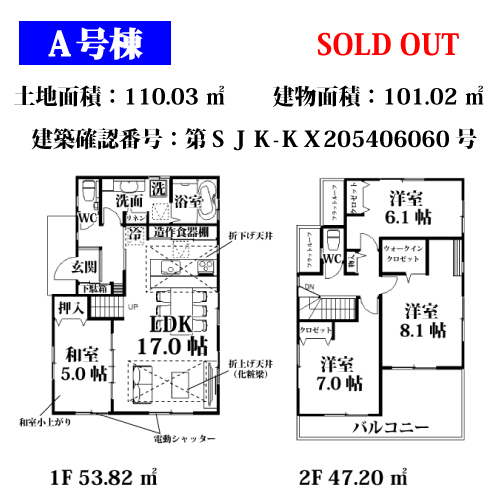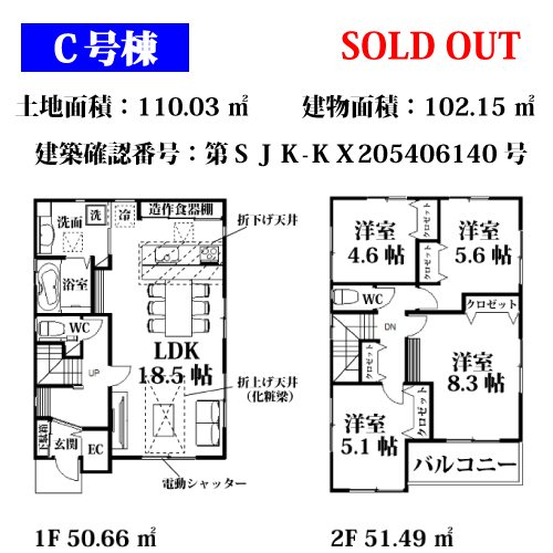 | 建物面積 | A号棟 101.02u B号棟 100.19u C号棟 102.15u D号棟 100.19u |