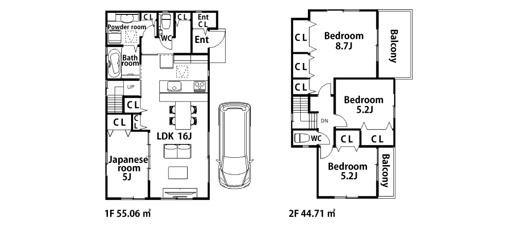| 間取詳細 | LDK16帖・和5帖・洋5.2帖・洋5.2帖・洋8.7帖 |