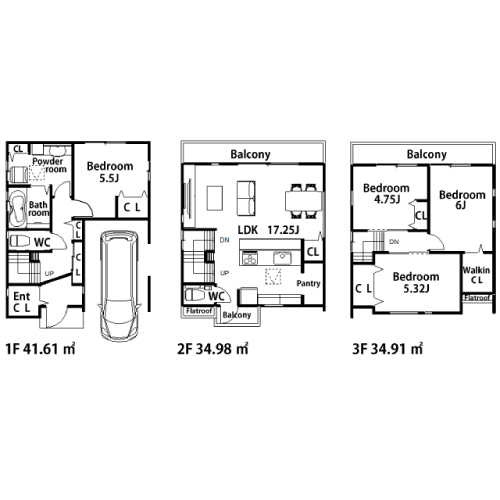 | 建物構造 | 木造ガルバリウム鋼板 葺 3階建(全棟共通) |
