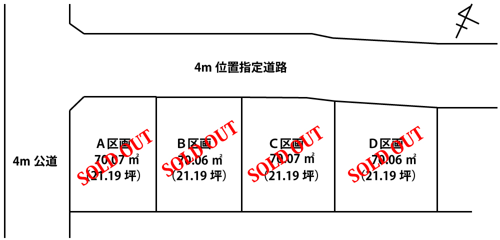 | 敷地面積 | A号棟 70.07u B号棟 70.06u C号棟 70.07u D号棟 70.06u |