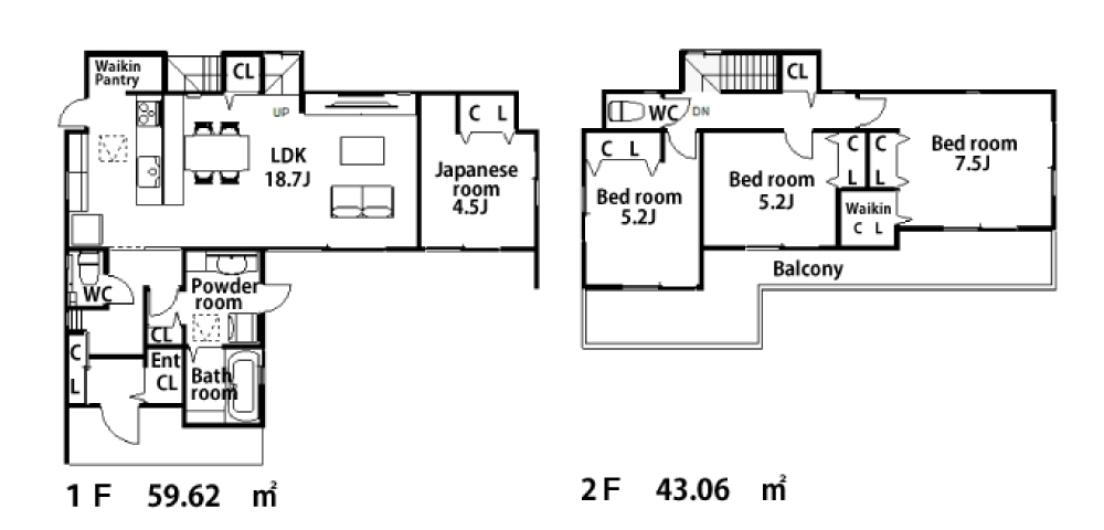 | 間取詳細 | LDK18.7帖・和4.5帖・洋5.2帖・洋5.2帖・洋7.5帖 |
