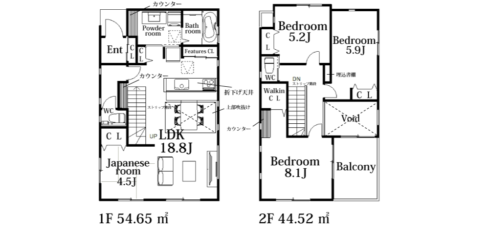 | 間取詳細 | LDK18.8帖・和4.5帖・洋5.2帖・洋5.9帖・洋8.1帖 |