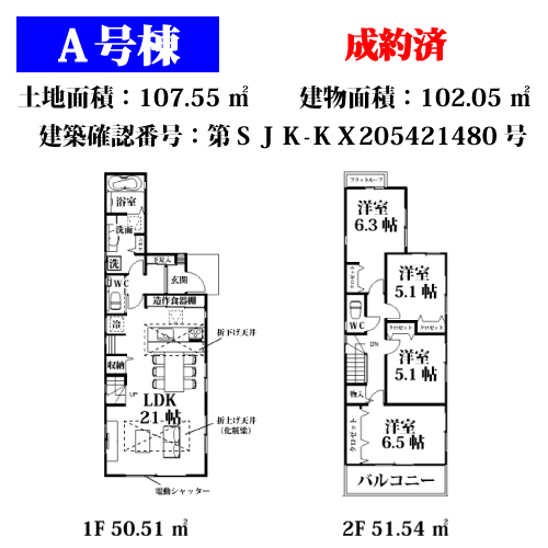 | 敷地面積 | A号棟:107.55u B号棟:101.30u C号棟:114.81u |