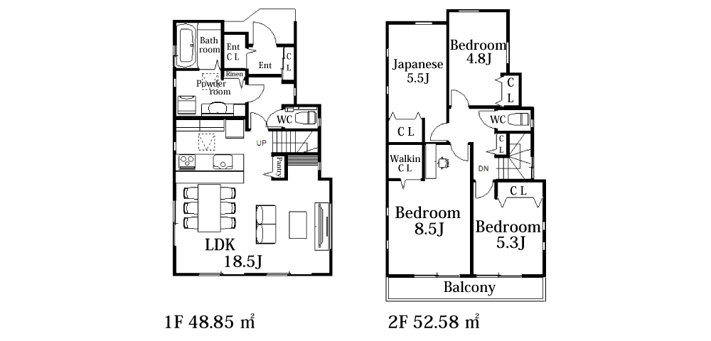 | 間取詳細 | LDK18.5帖・和5.5帖・洋4.8帖・洋5.3帖・洋8.5帖 |