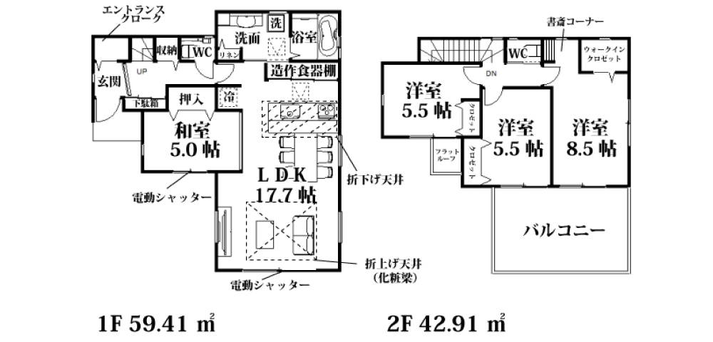 | 間取詳細 | LDK17.7帖・和5帖・洋5.5帖・洋5.5帖・洋8.5帖 |