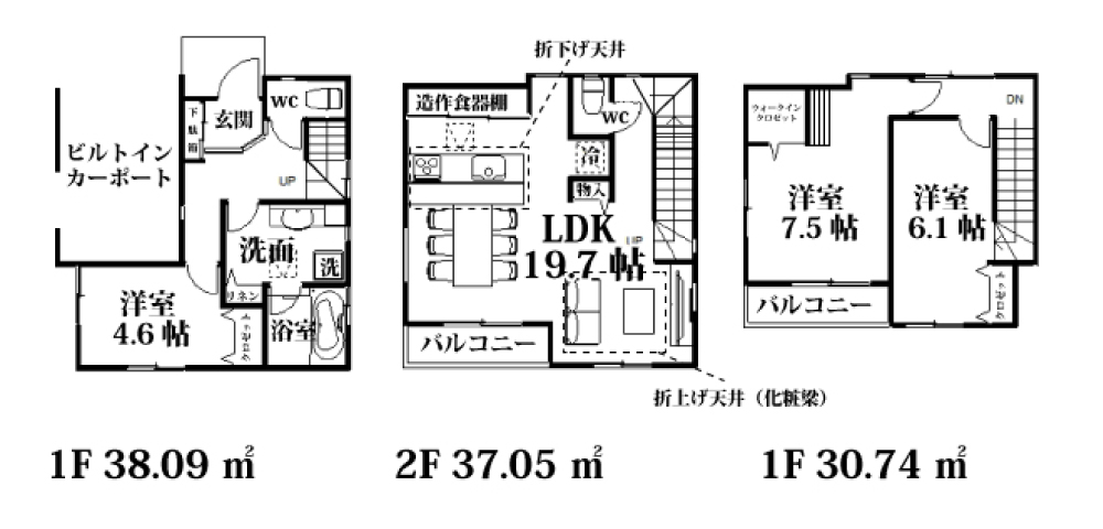 | 間取詳細 | LDK19.7帖・洋4.6帖・洋7.5帖・洋6.1帖 |