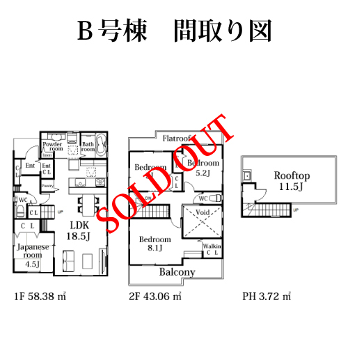 | 敷地面積 | A号棟 110.69 u B号棟 129.50 u C号棟 132.79 u |