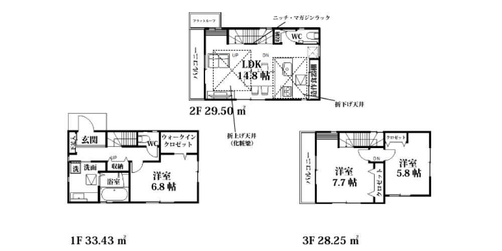 | 間取詳細 | LDK14.8帖・洋6.8帖・洋5.8帖・洋7.7帖 |