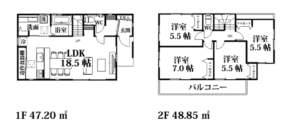 | 間取詳細 | LDK18.5帖・洋5.5帖・洋5.5帖・洋7.0帖・洋5.5帖 |