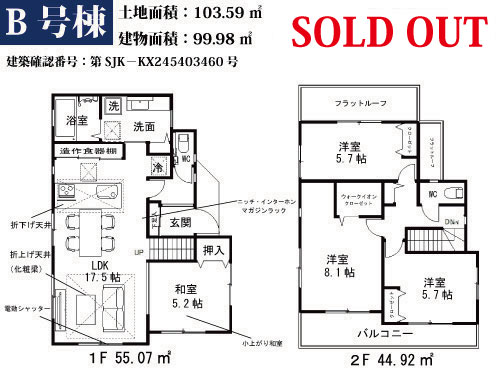 | 建物構造 | 木造 ガルバリウム鋼板 葺 2階建 |